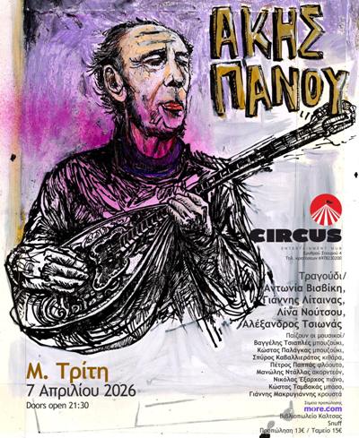 Τη Μεγάλη Τρίτη 7/4 θα γίνει ένα μεγάλο αφιέρωμα στα τραγούδια του Ακη Πάνου στο Circus Entertainment Hub.