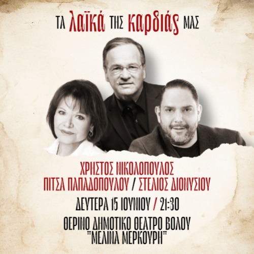 Στη σκηνή, ο κορυφαίος συνθέτης Χρήστος Νικολόπουλος, δημιουργός διαχρονικών επιτυχιών, ενώνει τις δυνάμεις του με την αυθεντική λαϊκή φωνή της Πίτσας Παπαδοπούλου και τον αγαπημένο ερμηνευτή Στέλιο Διονυσίου, σε ένα πρόγραμμα γεμάτο συναίσθημα, μνήμες και μεγάλες επιτυχίες.