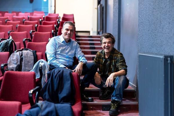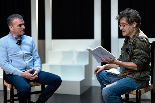 Θανάσης Μαμάκος και Γεράσιμος Γεννατάς επί σκηνής, στο Θεσσαλικό Θέατρο, σε μια ζωντανή, αποκαλυπτική συζήτηση για τα σύνορα της τέχνης και της ζωής.