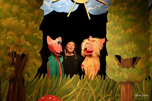 Στο τέλος της παράστασης οι μικροί θεατές μπορούν να φωτογραφηθούν με τους ήρωες μέσα στο καταπράσινο ξύλινο σκηνικό που θυμίζει μαγικό δάσος.