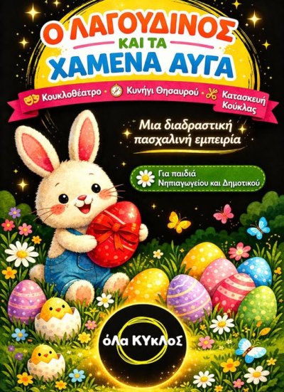 Η καλλιτεχνική ομάδα «Όλα ΚΥΚΛΟΣ» παρουσιάζει μια πρωτότυπη πασχαλινή δράση για μαθητές Νηπιαγωγείου και Δημοτικού, που συνδυάζει κουκλοθέατρο, παιχνίδι και βιωματική μάθηση.