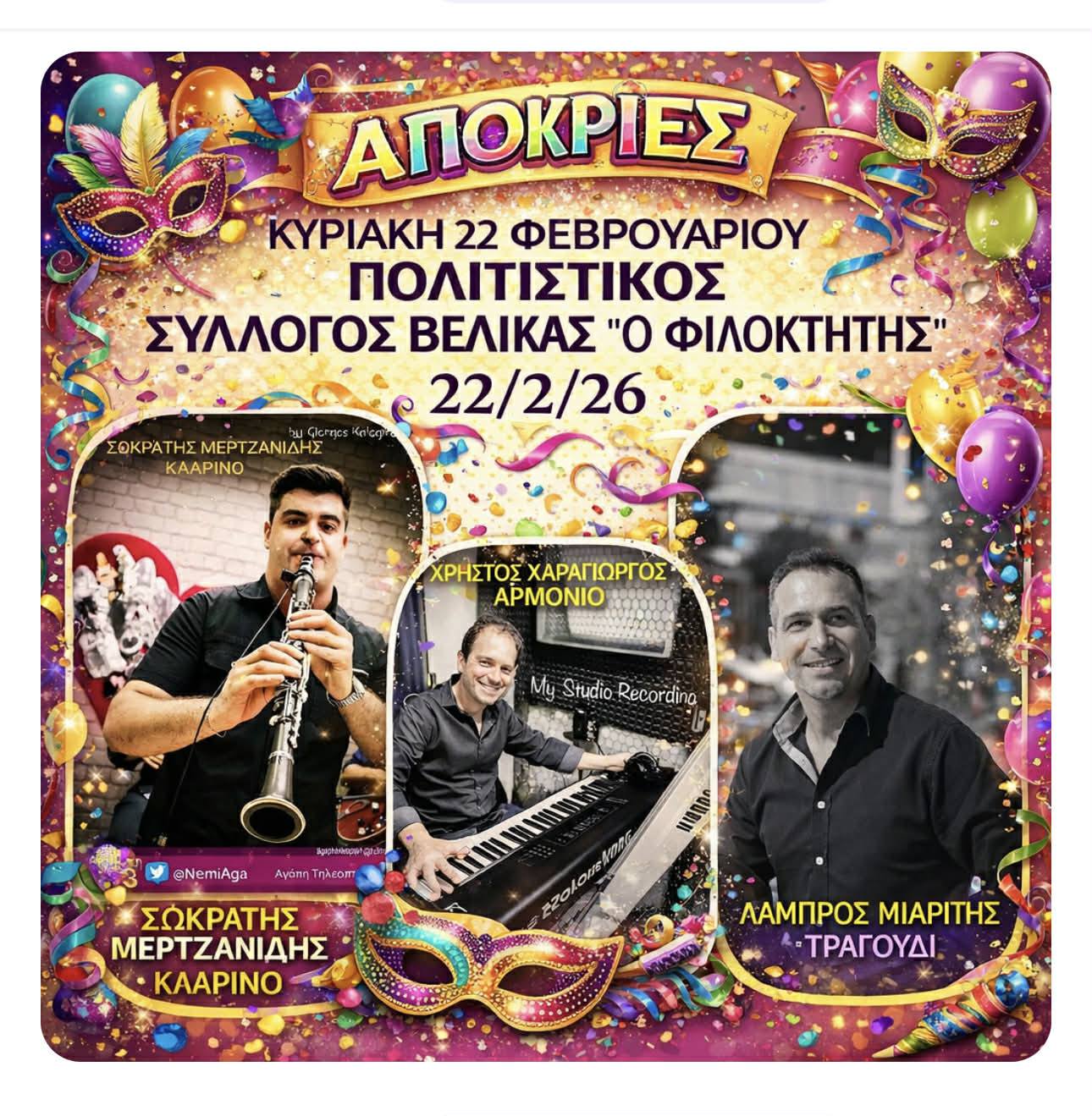 Ο Σύλλογος Ανατολιτών «Ιωάννης ο Πρόδρομος» διοργανώνει ένα διήμερο αποκριάτικων εκδηλώσεων, στις 22 και 23 Φεβρουαρίου 2026, με επίκεντρο την παράδοση, τη μουσική και τη συλλογικότητα.